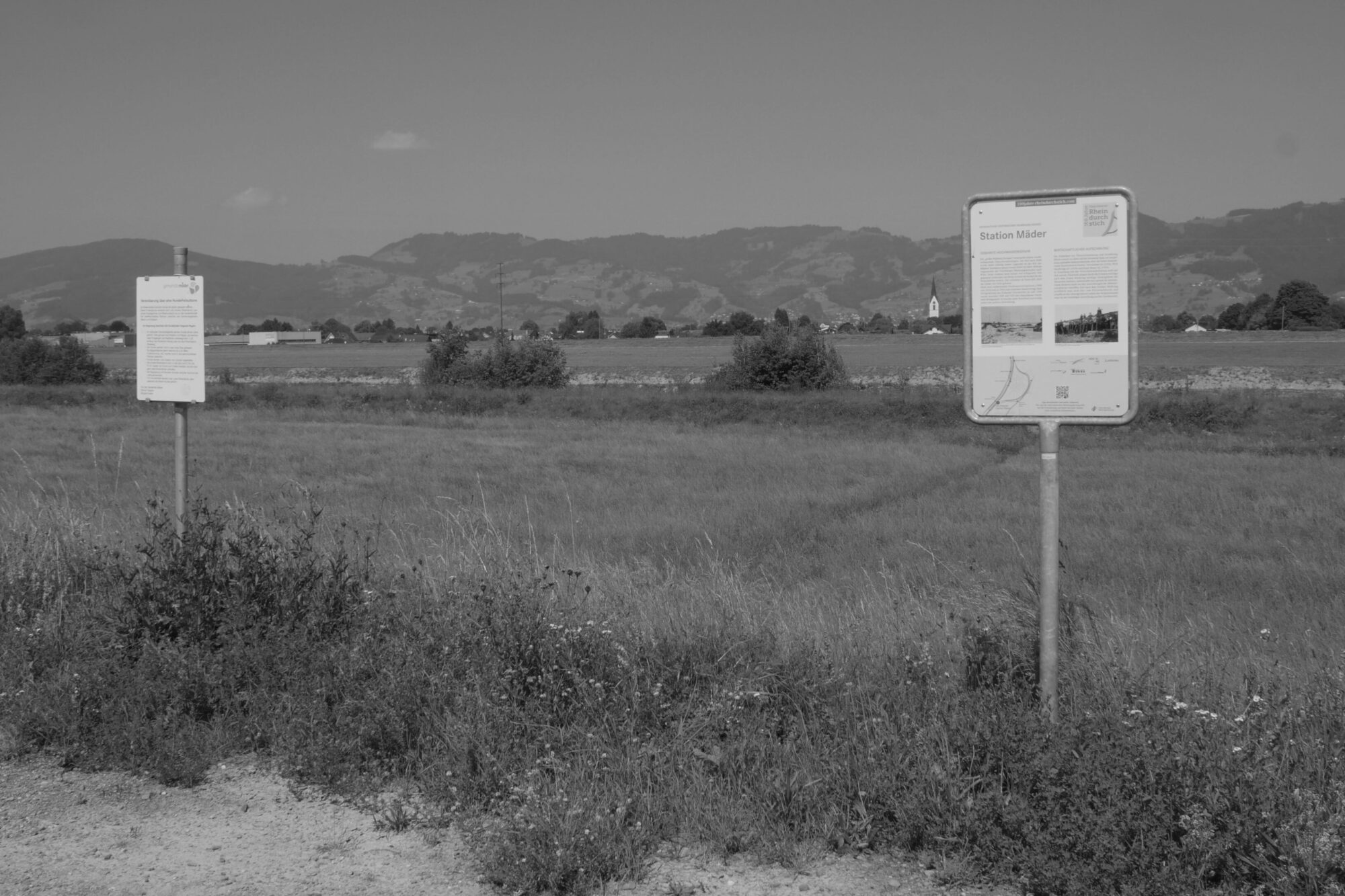Der Hörspaziergang folgt den Steinen, vom Steinbruch bis zur Baustelle. Dabei kreuzt er die Fluchtrouten von Zwangsarbeitern, die über den Rhein in die Schweiz flüchteten. Und er führt bis in die Ukraine, aus der Zwangsarbeiterinnen und Zwangsarbeiter nach Vorarlberg deportiert wurden. Mit diesem Spaziergang begeben Sie sich in eine Transitzone, in eine Landschaft, die geprägt ist von Grenzschleusen und Flutflächen. Diese Flusslandschaft befindet sich ständig im Wandel.